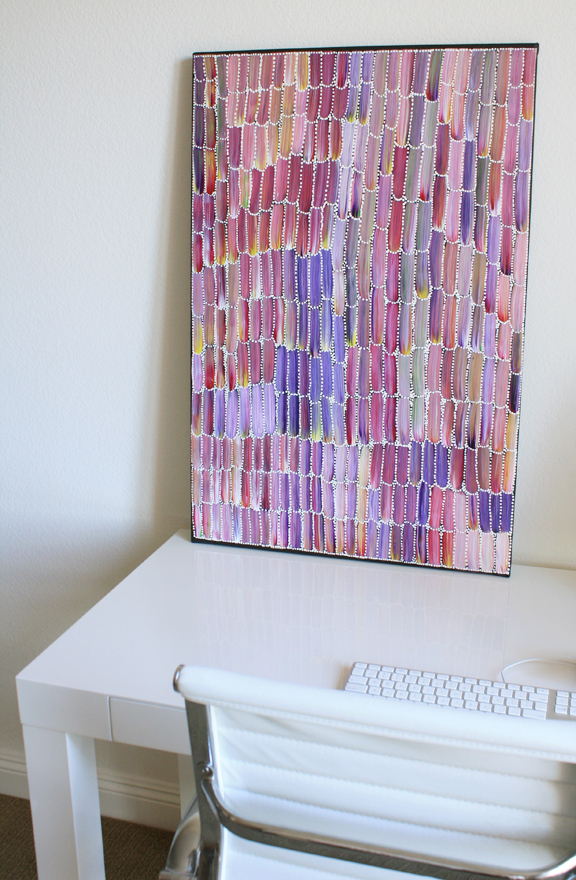 We ALSO bought a custom frame & are awaiting it's arrival! I'm SUPER excited to hang this aboriginal art in our new place. I have another painting I bought that's much LARGER than this one, it's by Janet Golder (she's also a popular aboriginal artist).